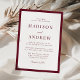 Celebrate your wedding day with this modern burgundy border wedding invitation, featuring a rich burgundy frame that adds warmth and timeless elegance to a clean, minimalist layout. The deep burgundy border creates a refined contrast against the white background, while classic serif typography and a subtle script accent lend a polished, sophisticated feel. Well-suited for formal ceremonies, traditional venues, and modern classic celebrations, this invitation offers a versatile foundation that feels both elegant and enduring. Personalize the wording to create a cohesive invitation that sets a confident and elevated tone for your wedding stationery suite.