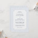 This modern striped wedding invitation features soft dusty blue and slate vertical lines paired with a refined minimalist layout. The elegant curved frame adds a subtle vintage touch while maintaining a clean, classic, and formal appearance. The timeless blue and white palette makes it ideal for church weddings, outdoor garden ceremonies, coastal celebrations, or traditional receptions.