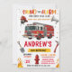 Invitation Modern FireFigher truck Birthday with image