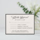 This elegant ivory RSVP card features a refined black border and a luxurious script heading that brings a timeless, classic feel to your wedding suite. The minimalist layout keeps everything clean and easy to read, while the sophisticated calligraphy adds a touch of old-money charm. Perfect for formal weddings, black-tie events, traditional celebrations, or any occasion where you want your stationery to feel polished, elegant, and effortlessly refined.