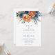 Invitation Modern Navy Burnt Orange Florals QR Code Wedding
