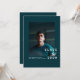 This modern graduation announcement features a bold teal color palette paired with clean, contemporary typography for a confident and polished look. The strong visual contrast keeps the design striking while remaining timeless and refined.