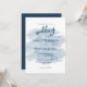 A Modern Wedding Invitation designed with a color wash of light and dark shades of blue on a white background. The text includes: The Bride and Groom's Names, Wedding Date, Time, Location and Reception Details. The reverse side is a matching deep blue background. To personalize, simply insert your text into our easy template, replacing the sample. Be sure to view the complete Modern Wedding Shades of Blue Collection for matching stationery and accessories.