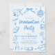 Invitation Modern Whimsical Hand Drawn Blue Graduation Party
