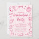 Invitation Modern Whimsical Hand Drawn Pink Graduation Party