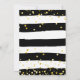 Tendance, cette invitation présente un fond rayé à l'aquarelle noir et blanc et des lettres et des confettis dorés qui tombent en arrière-plan.