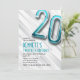 Invitation moderne Adulte Turquoise 20e Anniversai