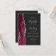 Le bord gauche de cette élégante faire-part de mariage moderne est orné d'une bordure d'aquarelle bordeaux et d'une fausse parties scintillant argentée. Le texte personnalisable combine écriture gris argent, copperplate et polices italiques sur un arrière - plan non noir. L'envers offre de l'espace pour les détails du mariage sur un arrière - plan sombre solide, ainsi qu'un code QR que les invités peuvent scanner pour visiter votre site Web et RSVP, ce qui permet d'économiser le coût d'impression et d'envoi de cartes RSVP séparées.