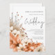 Fleurs d'automne modernes écriture manuscrite Code QR Mariage. Ajoutez votre code QR sur votre site web de mariage au verso fait de ceci une option pratique pour vos invités pour répondre et voir tous les détails sans avoir besoin de cartes de réponse et de détails séparées. Un ensemble de texte manuscrit pour le mariage et le reste du texte que vous pouvez facilement personnaliser. Des fleurs de couleur automnale en terre cuite, marron et crème descendent le long du côté gauche et traversent le bas et sont également au verso.