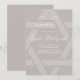 L'étoile de David est une caractéristique majeure de cette invitation car elle est placée en gras au centre du design. L'invitation a une mise en page créative avec un look moderne, jeune et pourtant élégant.