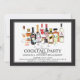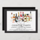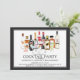 L'invitation unique de partie de fiançailles de cocktail comportant une scène de cocktail d'aquarelle avec la boisson alcoolisée met en bouteille et des boissons réglées sur un arrière - plan blanc avec un cadre noir.