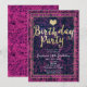 Invitation moderne de fête d'anniversaire rose et