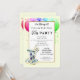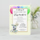 Invitation joyeuse et moderne à une fête du thé pour célébrer le fait d'être sans dettes (ou pour une fête de crémation d'hypothèque, de pendaison de crémaillère, d'anniversaire, etc.). L'invitation présente des ballons, une tasse de thé à l'aquarelle, un texte manuscrit et des ballons, ainsi qu'un message final au verso.