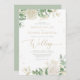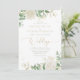Un élégant faire-part de mariage floral avec des pivoines d'aquarelle blanche et des roses avec de la verdure et de la calligraphie manuscrite moderne délicate.