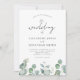 Un faire-part de mariage moderne au design simple, aquarelle eucalyptus vert accentue élégante calligraphie de style et couleur sage.