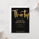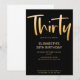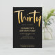 Introduisez une nouvelle invitation moderne et élégante à la fête du 30e anniversaire, arrière - plan noir avec texte de typographie manuscrite en or "trente". Customisez cette carte de modèle en ajoutant vos propres informations de fête.