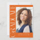 Orange Modern Elegant Vertical Two Photo Graduation Invitation présente un type amusant et moderne, avec votre photo de graduation. Ajoutez les détails de votre fête ou de votre maison ouverte à l'arrière.