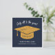 Faites de votre fête de troisième cycle une invitation à la fête de remise de diplômes moderne. Le design comporte une casquette de graduation en or audacieuse sur un arrière - plan bleu marine, qui peut être facilement customisé aux couleurs de votre école grâce aux outils Design. Mettez à jour le texte à l'avant et à l'arrière, ainsi que les polices et les couleurs. Aussi disponible en téléchargement.