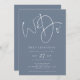 Invitation Moderne Nous faisons Script Dusty Blue QR Code Mar