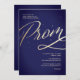 Élégant ensemble d'invitations pour le bal de promo en or et bleu marine avec une belle typographie.