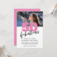 Pink and black 50 and Fabulous 50th Birthday Script party Invitation. Design stylisé unique les mots "50 et Fabulous" sont mis en utilisant la typographie populaire. Un modèle a été mis en place pour vous permettre d'ajouter votre texte. Personnalisez la photo et le nom.