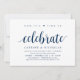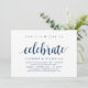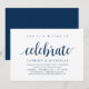 Carte d'invitation thématique Moderne Rustique, Écriture Bleu Marine (avec titre de carte : maintenant il est temps de célébrer). Elle est parfaite pour votre réception de mariage en intime / fête de célébration post-mariage. Ajoutez vos détails dans une police / lettrage noir assorti.