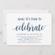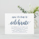 Carte d'invitation sur le thème Moderne Rustique, Écriture Bleu Marine (avec titre de carte : maintenant il est temps de célébrer). Elle est parfaite pour votre réception de mariage intime / fête de célébration après le mariage. Ajoutez vos détails dans une police / lettrage noir assorti.