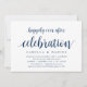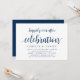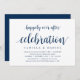 Carte d'invitation à thème Moderne Rustique, Écriture Bleu Marine (avec titre de carte : Célébration de bonheur éternel). Elle est parfaite pour votre réception de mariage intime / fête de célébration après le mariage. Ajoutez vos détails dans une police / lettrage noir assorti.