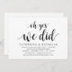 Carte d'invitation sur le thème Moderne Rustique, Écriture Noire (avec le titre de la carte : oh oui, nous l'avons fait). Elle est parfaite pour votre réception de mariage en intime / fête de célébration post-mariage. Ajoutez vos détails dans la même police / lettrage noir.