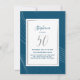 Cette invitation de 50 ans moderne et élégante de 4,5 po x 6,25 po présente des lignes d'argent (feuille simulée) et blanches sur un arrière - plan bleu marine (qui peut être changée à n'importe quelle couleur de votre choix). Le numéro "50" est écrit dans une police de script moderne et correspond aux lignes argentées de l'arrière - plan. Customisez cet invitation branché avec le nom et les informations de fête.