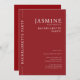 Présentation d'un design élégant et sophistiqué de bachelorette d'invitation de fête, parfait pour une mariée à la recherche d'une touche moderne. Ce modèle est doté d'un arrière - plan rouge audacieux qui respire l'élégance et le style. avec le nom des mariées sont affichées en évidence dans une police serif blanche classique, ajoutant un charme intemporel à la conception. également une belle photo peut être ajoutée à l'arrière de l'invitation. L'expression "soirée bachelorette" est élégamment positionnée le long du bord gauche, ouvrant la voie à un rassemblement intime. L'aménagement est propre et organisé, assurant ainsi que tous les détails de l'événement sont clairement présentés. Cette conception inclut des champs personnalisables pour la date, l'heure et l'emplacement de l'événement, ce qui vous permet de personnaliser facilement votre personnalisation pour votre famille et vos amis. . L'invitation offre également de l'espace pour les détails RSVP, assurant une expérience transparente pour les hôtes et les invités. cette conception d'invitation combine simplicité moderne avec élégance classique, en faisant un choix exceptionnel pour toute soirée de bachelorette. si vous aimez cette carte dans une autre couleur, ils s'il vous plaît contactez-moi janine à travers mon magasin message bouton avec votre code couleur hexadécimal et je le changera pour vous.