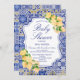 Invitation modifiable carreaux bleus citrons