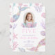 Invitation modifiable de plongée avec cinq sirènes avec photo Invitation d'anniversaire 5 ans Queue de sirène rose violet Cinquième 5 thème pastel pailleté Z8