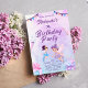 Invitations amis et famille à une fête magique avec cette enchanteresse invitation à l'anniversaire de conte de fées! Avec des illustrations fantaisistes de deux fées adorables contre un arrière - plan d'aquarelle douce aux violets et roses pastel, ce design apporte une touche d'émerveillement et d'imaginaire à l'occasion. Des éléments festifs comme des bannières, des cadeaux et un gâteau renforcent l'ambiance festive. Personnalisez le nom de l'enfant d'anniversaire, son âge, les détails de la fête et les informations RSVP pour faire de cette invitation exclusivement la leur. Parfait pour une fête de 5ème anniversaire remplie de contes de fées amusants et enchantés!