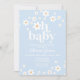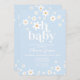 Mon bébé ! Invitation baby shower bleu pâle d'inspiration rétro avec marguerites de style années 70 et polices et couleurs boho.