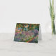 Une carte d'invitation aux fleurs de Monet avec de belles iris roses et violets dans un jardin chatoyant sous de grands arbres. Un grand cadeau Monet pour les amateurs d'impressionnisme et d'art français. Impressionnisme nature paisible avec de belles fleurs et paysage pittoresque.