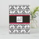 Invitation MONOGRAMME DAMAS, noir blanc, rouge bordeaux