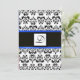 Invitation MONOGRAMME DAMAS, noir et blanc,bleu