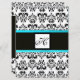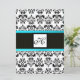Invitation MONOGRAMME DAMAS, noir et blanc, bleu turquoise