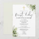 Cette élégante invitation de première sainte communion avec feuilles de botanique verdoyantes peut être personnalisée avec vos informations en typographie chic avec vos initiales de monogramme au verso. Conçue par Thisisnotme©