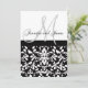 Monogramme, noms et Invitations Black et White Mariage damassé. Monogramme et noms Invitation Présentation et conception par Elke Clarke © 2008, 2009, 2010. Damask Pattern Licence.com et WhiteWhimsicalWeddings.blogspot.com. Customisez avec vos noms monographiques et couleurs mariages. Ajoutez toutes vos informations mariages au verso de la carte en utilisant les invites de menu faciles à utiliser de Zazzle.
