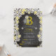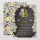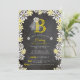 Cette carte d'invitation de fête pour une baby shower sur le thème du jardin printanier/estivant présente un monogramme classique de mariée avec un voile blanc orné d'une fleur de marguerite sur un fond de tableau noir encadré par des grappes de jolies marguerites blanches et jaunes vives. Le dos de la carte présente un motif assorti de marguerites.