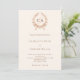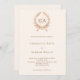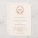 Un arrière - plan beige décoré d'une crête - Personnalisez et vos initiales, noms et détails monogrammes. Retour : ajoutez l'URL/le lien à votre site Web mariage pour plus de détails et/ou RSVP