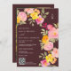 Célébrez votre mariage avec notre charmant code Qr Floral Mariage et la photo Invitation. Cette invitation magnifiquement conçue présente un délicieux éventail de fleurs peintes à la main dans des tons vifs de rose, d'orange et de jaune, accentués par le feuillage vert luxuriant. L'élégante bordure florale encadre parfaitement le texte, créant un look harmonieux et romantique. Un monogramme moderne dans le coin supérieur ajoute une touche personnelle, et un code QR moderne en bas à droite assure des options RSVP pratiques sur un arrière - plan en acajou rustique foncé modifiable. De plus, il y a un modèle photo personnalisable à l'arrière, vous permettant d'ajouter une photo chère du couple, rendant cette invitation non seulement belle mais aussi personnelle et mémorable.