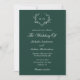 Notre élégante faire-part de mariage vert émeraude comporte une couronne botanique feuillue encerclant les initiales monographiques de la mariée et du marié. Cette élégante invitation de mariage peut être personnalisée avec vos informations dans un magnifique script de calligraphie blanche sur un arrière - plan vert émeraude.