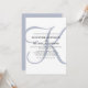 Ces invitations de mariage élégantes affichent votre monogramme dans un grand texte moderne couleur bleu poussiéreux sur un arrière - plan blanc. Un look simple et élégant pour votre mariage moderne.