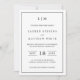 Faire-part de mariage simple avec un design moderne et élégant avec votre monogramme à deux lettres en haut, une mise en page audacieuse et vos détails entourés d'une fine bordure. Tout le texte est en noir, sur un arrière - plan blanc et l'arrière est en noir solide. Les polices et les couleurs arrière - plans peuvent être changées en n'importe quelle couleur. Un design chic et design qui conviendra à un couple minimaliste.