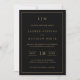 Faire-part de mariage simple avec un design moderne et élégant avec votre monogramme à deux lettres en haut, une mise en page audacieuse et vos détails entourés d'une fine bordure. Tout le texte est en faux or sur un arrière - plan noir. Les polices et les couleurs arrière - plans peuvent être changées en n'importe quelle couleur. Un design chic et design qui conviendra à un couple minimaliste.