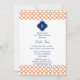 Motif de quatrefoil orange et invitation à la douche nuptiale bleue royale avec monogrammes. Une motif simple et élégante. L'arrière - plan est blanc.
