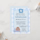 Customisez cette invitation de Baby shower monogramme avec un Initial et les détails de la fête. Invitation est le design pour les garçons avec des blocs de bébé avec le mot garçon. Joli peluche et chat assis sur les blocs.